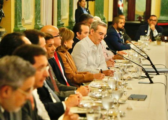 Abinader expuso sus pareceres sobre distintos temas nacionales en una conversación abierta con más de 40 periodistas y comunicadores en un almuerzo que se extendió por dos horas y media en el Salón Verde del Palacio Nacional.