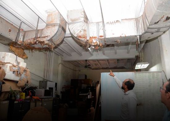 En la estructura de este espacio abundan las filtraciones en el techo, humedad y deterioro de su edificación.