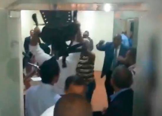 Esto provocó que los demás empezaran a empujarse, darse puñetazos, vociferando improperios, lanzando sillas y rompiendo objetos.